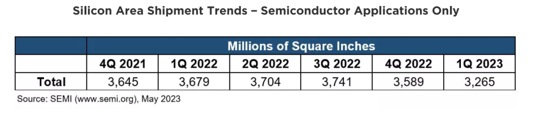 2023年5月2日,SEMI SMG(SEMI Silicon Manufacturers Group)在其硅晶圆行业季度分析报告中称,2023年第一季度全球硅片出货量环比下滑9.0%,下降至32.65亿平方英寸,而去年同期出货量为36.79亿平方英寸,同比下降11.3%。