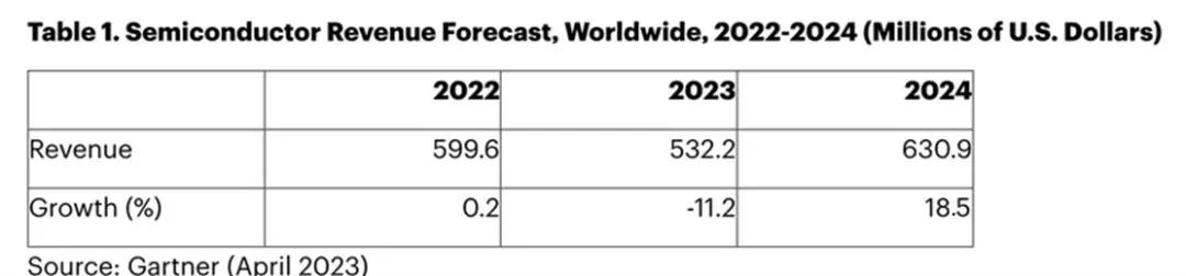 根据 Gartner, Inc.的最新预测,2023 年全球半导体收入预计将下降 11.2%。半导体市场的短期前景进一步恶化。预计 2023 年全球半导体收入总额将达到 5320 亿美元。
