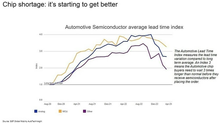 2022年还有300万辆汽车没有生产,在2023年前6个月,全球因芯片短缺而减产的汽车数量降至约52.4万辆。尽管芯片供应仍然受到限制,但更可预测的可用性使汽车制造商能够调整其生产计划。