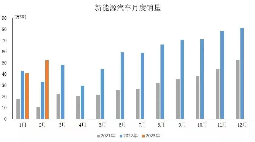 另一方面,市场对新能源汽车的需求持续高涨,车规级芯片需求量随之正向增长。今年1-2月,新能源汽车销量同比增长超过20%,2022年同比增长达93.4%。